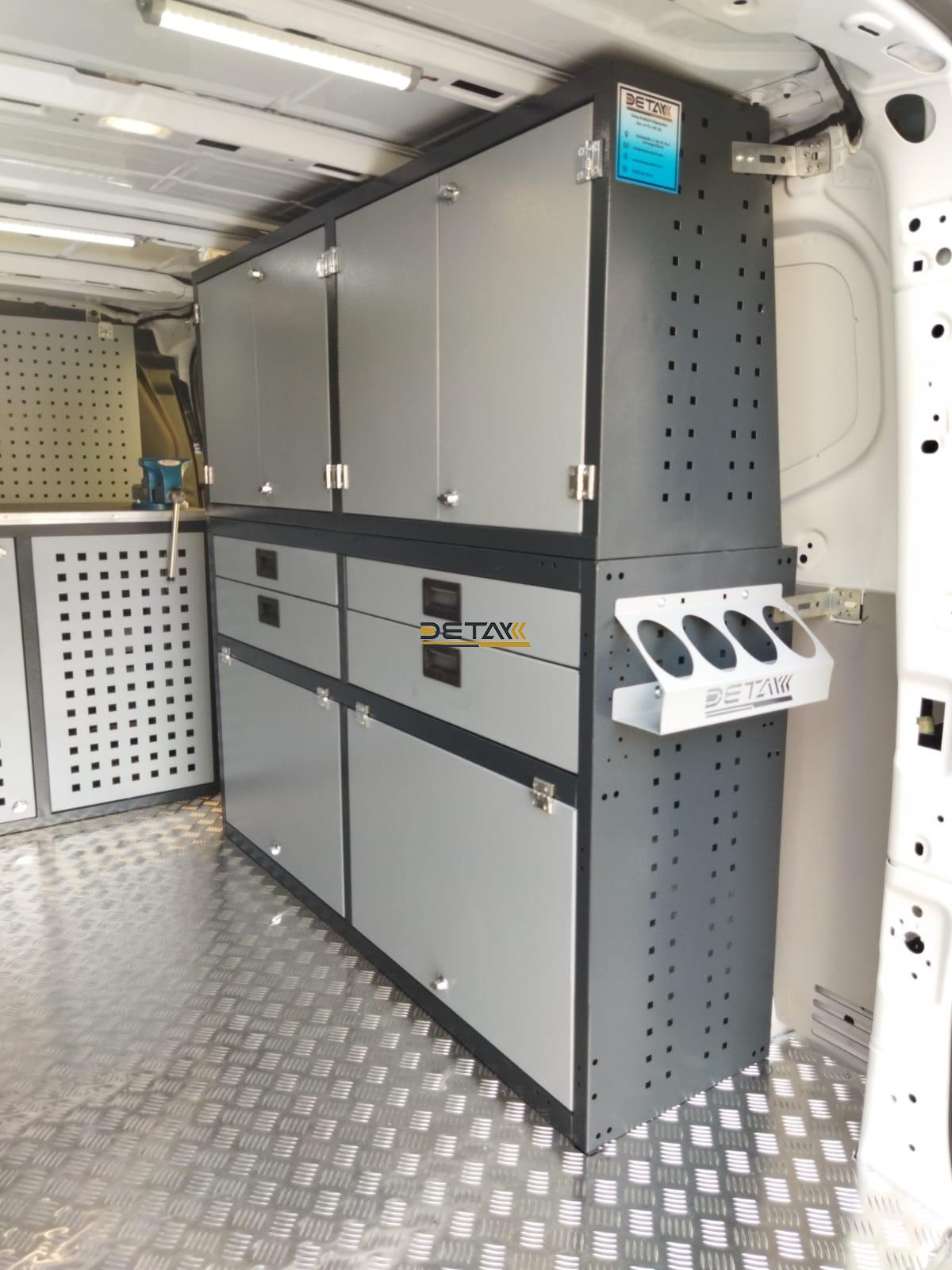 • Güvenlik: Araç içinde serbestçe dolaşan malzemeler, ani fren veya kaza durumlarında ciddi tehlikelere yol açabilir. Malzeme dolapları, bu tür riskleri minimize eder.